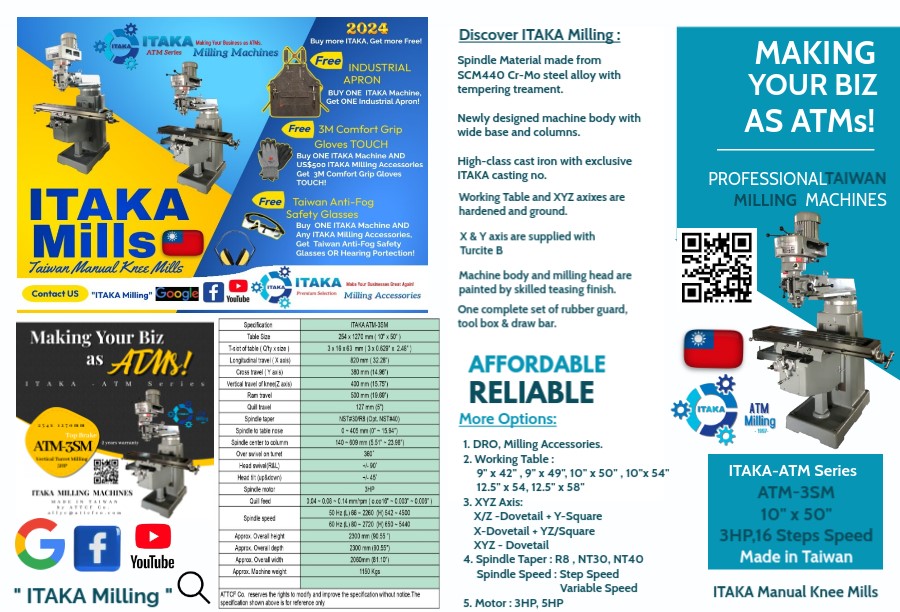 ITAKA Milling Machines are from ITAKA Machine Tools. ITAKA was born to be your first Taiwan Milling Machine, creating your businesses and making money like ATMs!