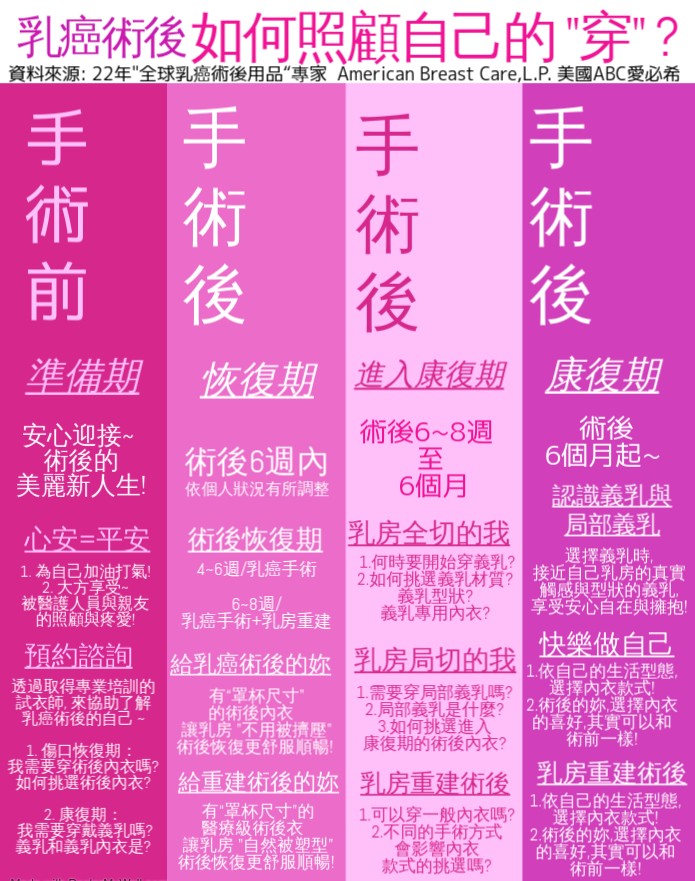 21年全球乳癌術後用品專家 ~從”手術前準備期~手術後恢復期~進入康復期~康復期”的四個階段,